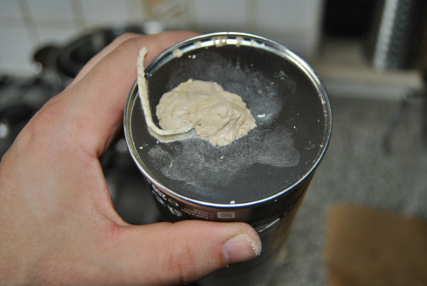 Rendez-vous plutôt dans la grande surface de bricolage la plus proche et achetez un petit pot de mastic d'étanchéité pour sanitaire (souvent appelé aussi mastic de plombier ou plumbers putty). Le mastic pour sanitaire a la particularité de ne pas durcir et de garder son élasticité, et c'est exactement ce que nous voulons. Un pot de 400 grammes vous coûtera environ 7 euros et vous durera des années.