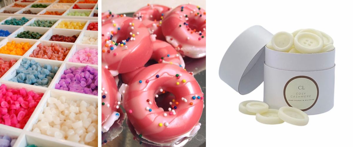 En théorie, tout ce dont on a besoin pour les réaliser, c'est de la cire (de soja, de coco ou autre), des fragrances synthétiques, un ou plusieurs moules en silicone et de quoi donner au fondant un aspect intéressant. En plus des colorants classiques pour bougies, l'absence de flamme autorise aussi l'utilisation d'herbes séchées, d'éléments de fleurs, d'épices, de pratiquement n'importe quoi.