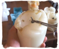 Sur la photo 8, vous pouvez remarquer que le centre de la cire est encore tiède à sa couleur plus foncée.