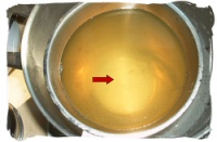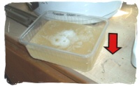 Si vous constatez qu'il y a beaucoup d'impuretés au fond du récipient, il est recommandé de filtrer la cire avant de la transverser (voir plus loin). Si c'est le cas, placez votre thermomètre dans le récipient et portez la température de la cire jusqu'à 90°C.