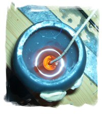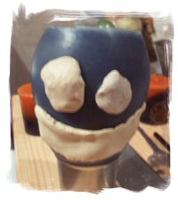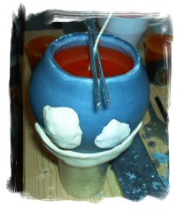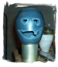 Une fois cette coquille obtenue, donnez-lui des yeux (menaçants) et une bouche (grimaçante), équipez-la d'une mèche et remplissez-la de cire pour Conteneur.
