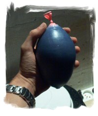 Placez l'embouchure du ballon autour du bec d'un robinet et, lentement pour ne pas innonder les environs, remplissez-le d'eau froide jusqu'à ce qu'il ait atteint la taille que vous voulez donner à la coquille.