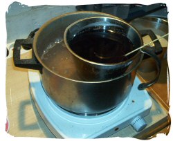 De plus, vous veillerez à ne pas trop remplir le récipient de fonte. N'oubliez pas que le fait d'y tremper le ballon risque, si vous perdez cela de vue, de faire déborder la paraffine.